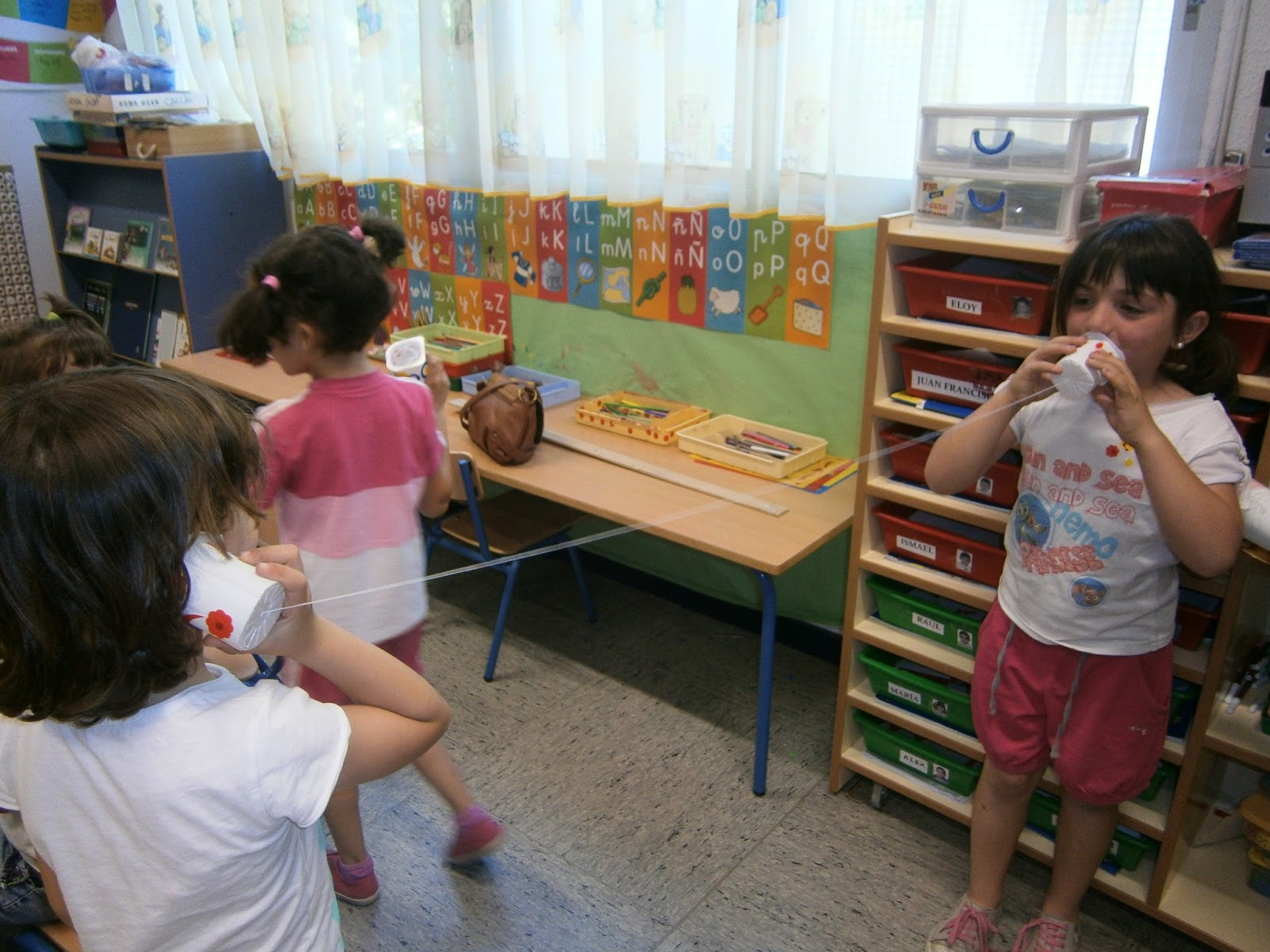 Os dejo algunas fotos de la visita de Raquel e Irene a nuestra clase y del teléfono tan bonito que hicimos: